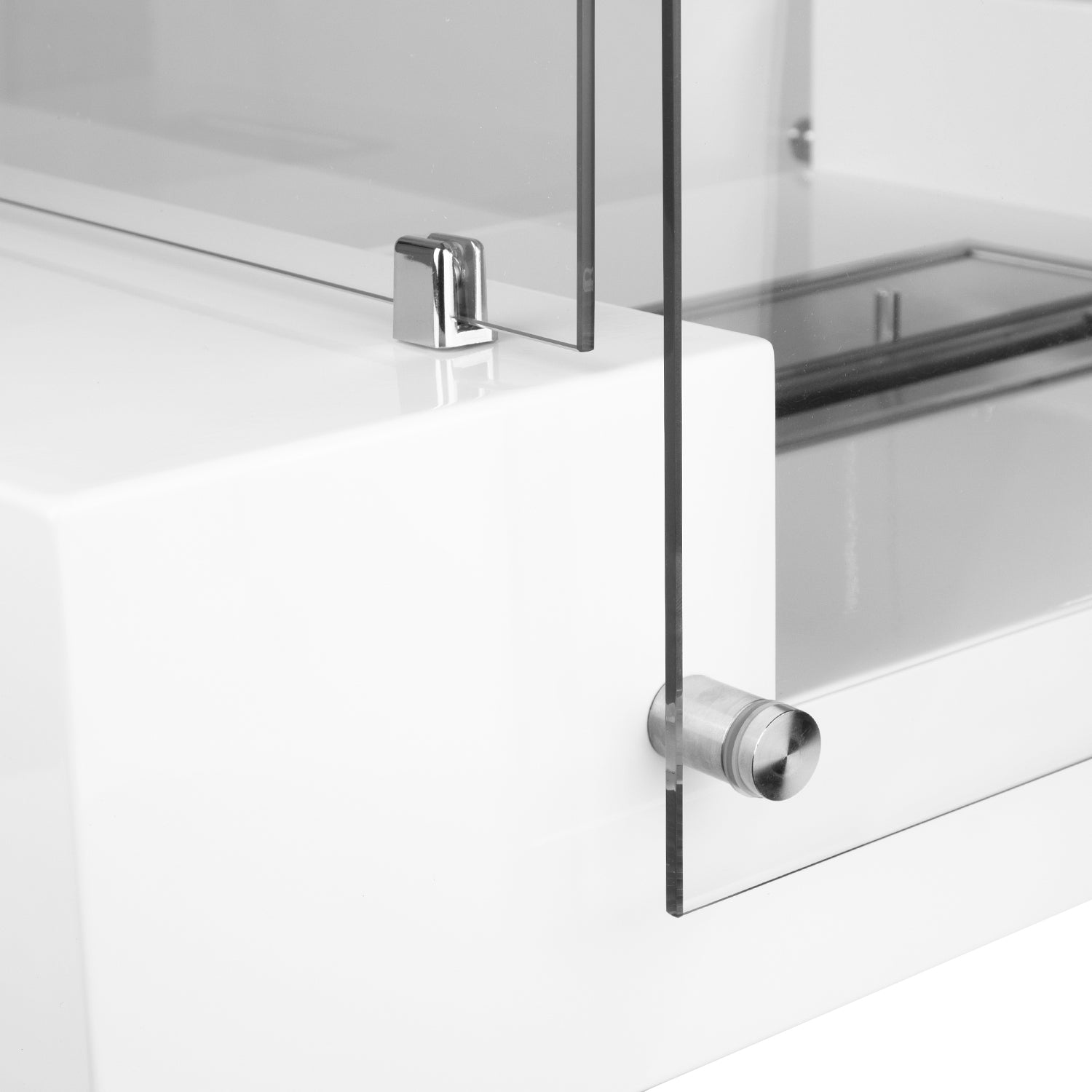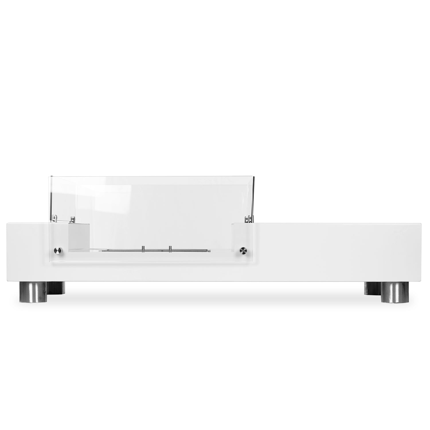 Robust und langlebig dank sehr hochwertiger Materialien - Ethanolbrenner aus Edelstahl - Kamin aus pulverbeschichtetem Stahl weiß.