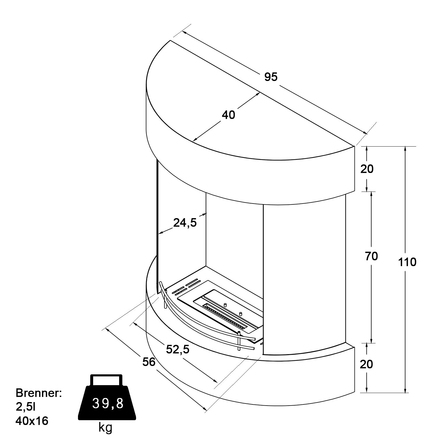 Der Ethanolkamin „Elite Weiß“ besticht durch sein elegantes Design und die hochwertige Verarbeitung. Der halbrunde Standkamin in glänzendem Weiß wird zum stilvollen Blickfang in jedem Wohnraum und schafft eine exklusive Atmosphäre. Das großzügige Flammenbild entsteht durch den 2,5-Liter-Bioethanol-Brenner, der für stundenlanges Feuervergnügen ohne Rauch, Ruß oder Schornstein sorgt. Mit einer Höhe von 110 cm und einer Breite von 95 cm fügt sich der Kamin perfekt in moderne Wohnumgebungen ein. Die klare Linienführung und die kontrastierende schwarze Rückwand setzen die Flammen besonders eindrucksvoll in Szene. Einfach aufstellen, befüllen und die gemütliche Kaminatmosphäre genießen.